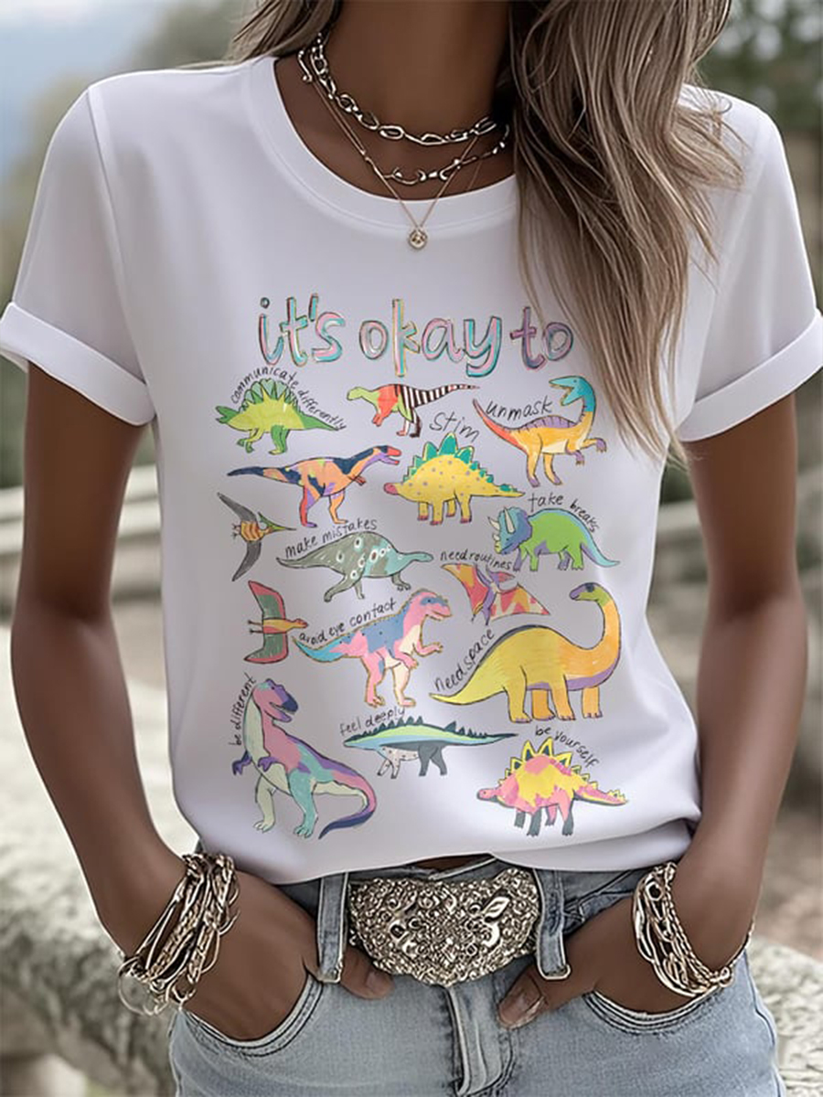 Women's It’s Ok To Be Different Autism Dinosaur Printed T-Shirt