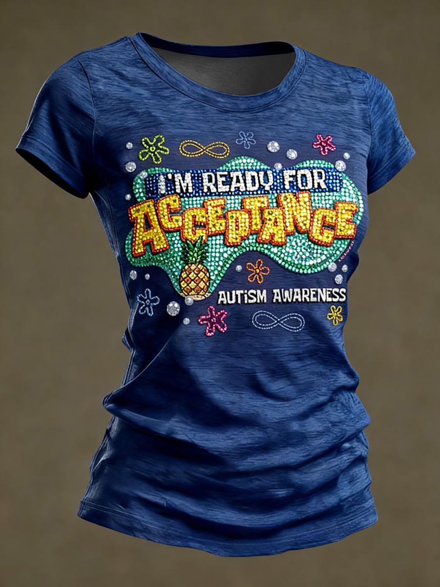 Women's Autism Awareness Print short-sleeved T-shirt