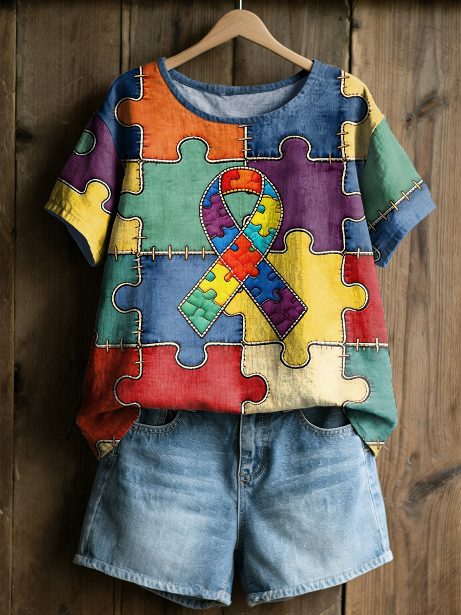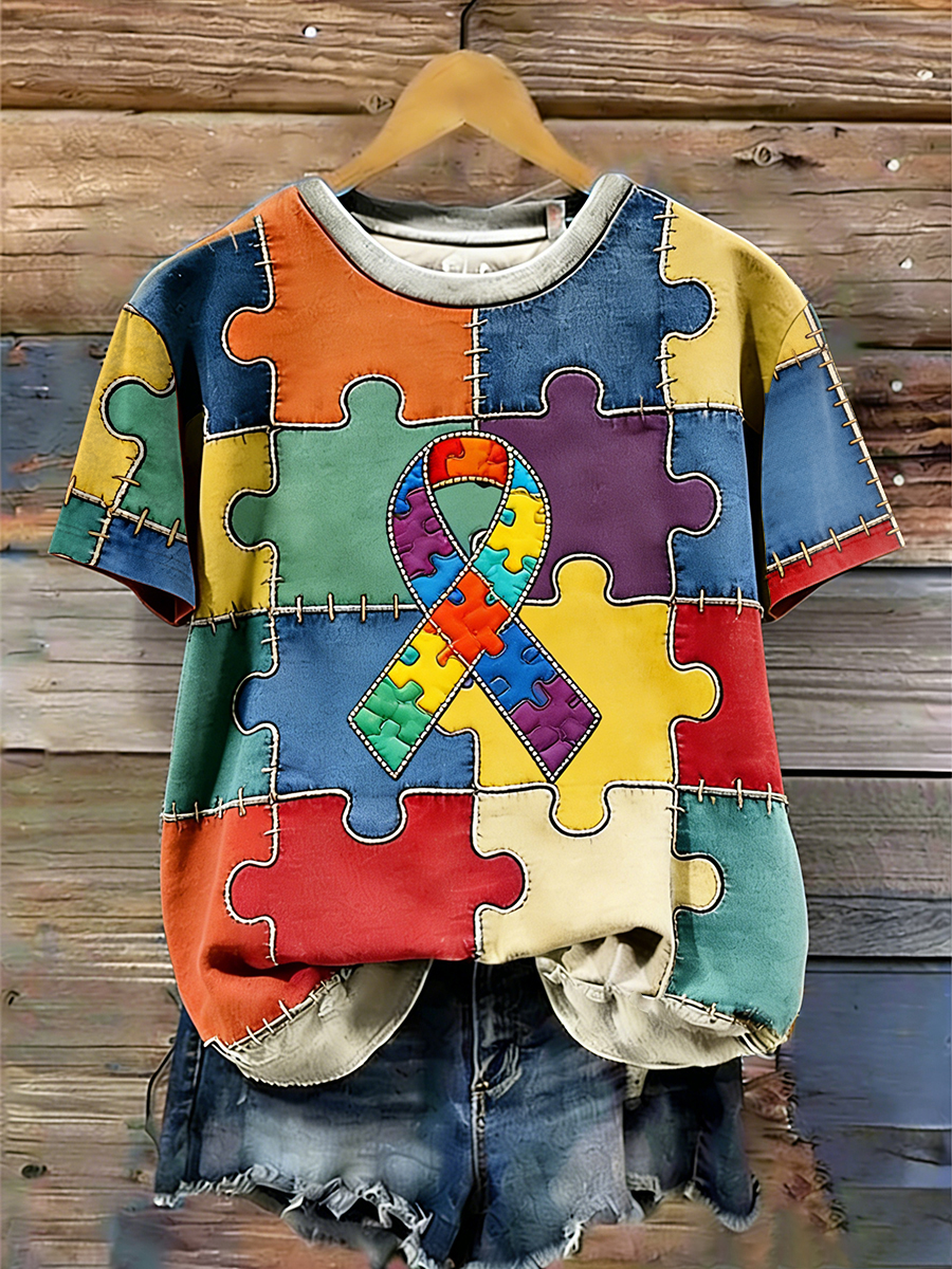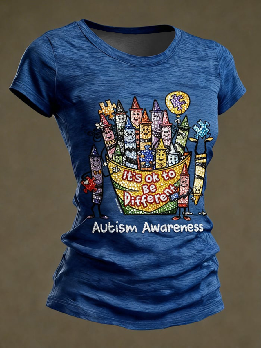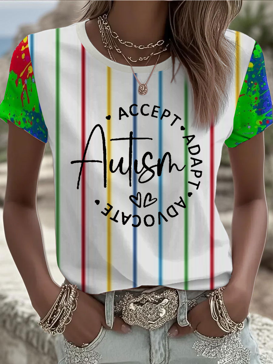 Women's Autism Awareness Printed Casual T-Shirt