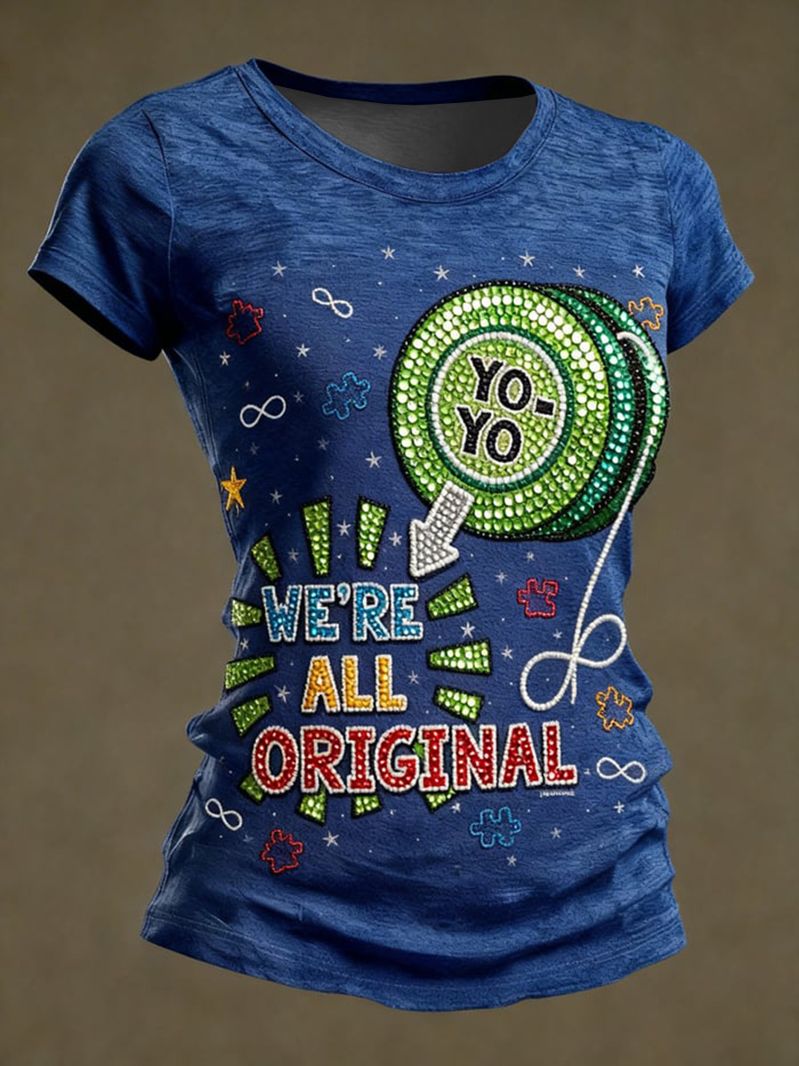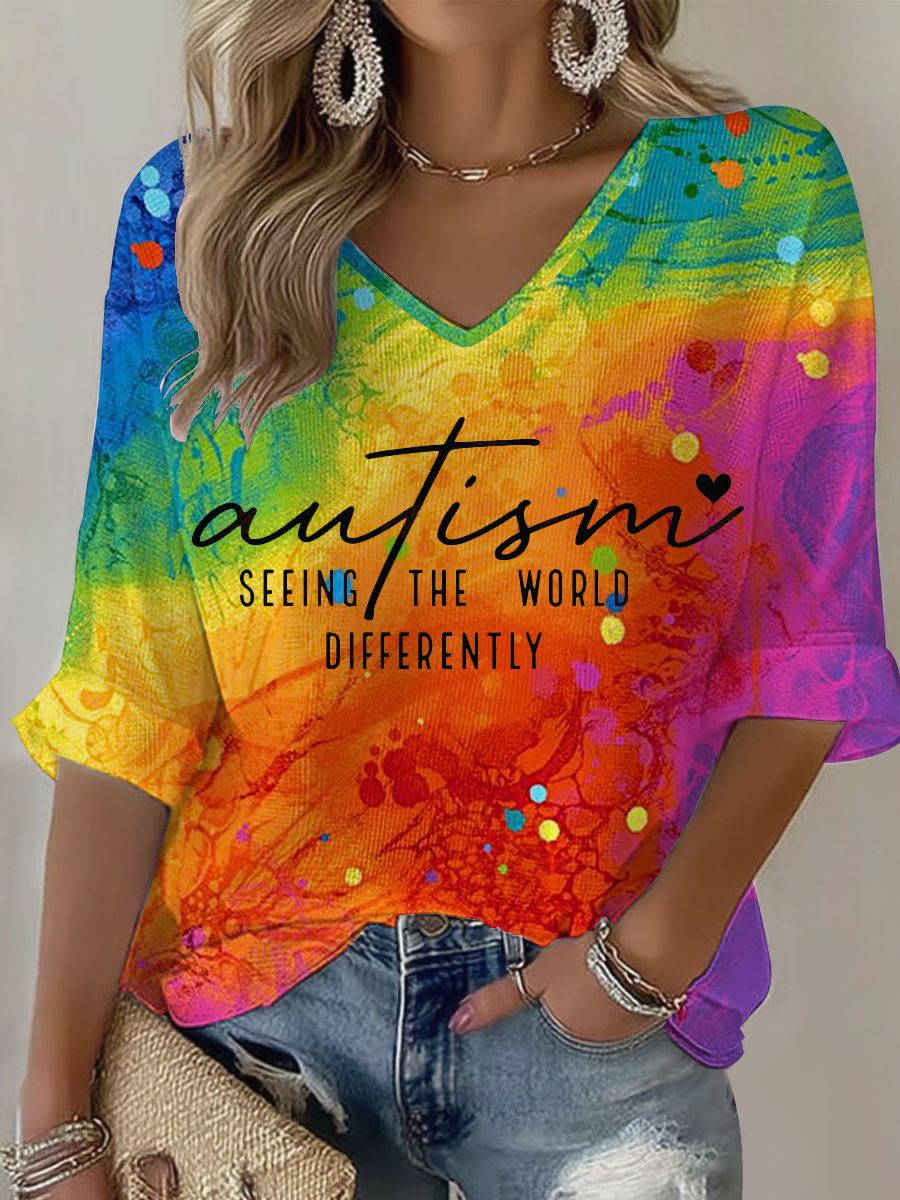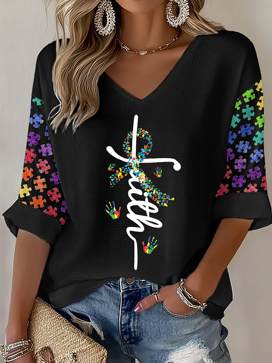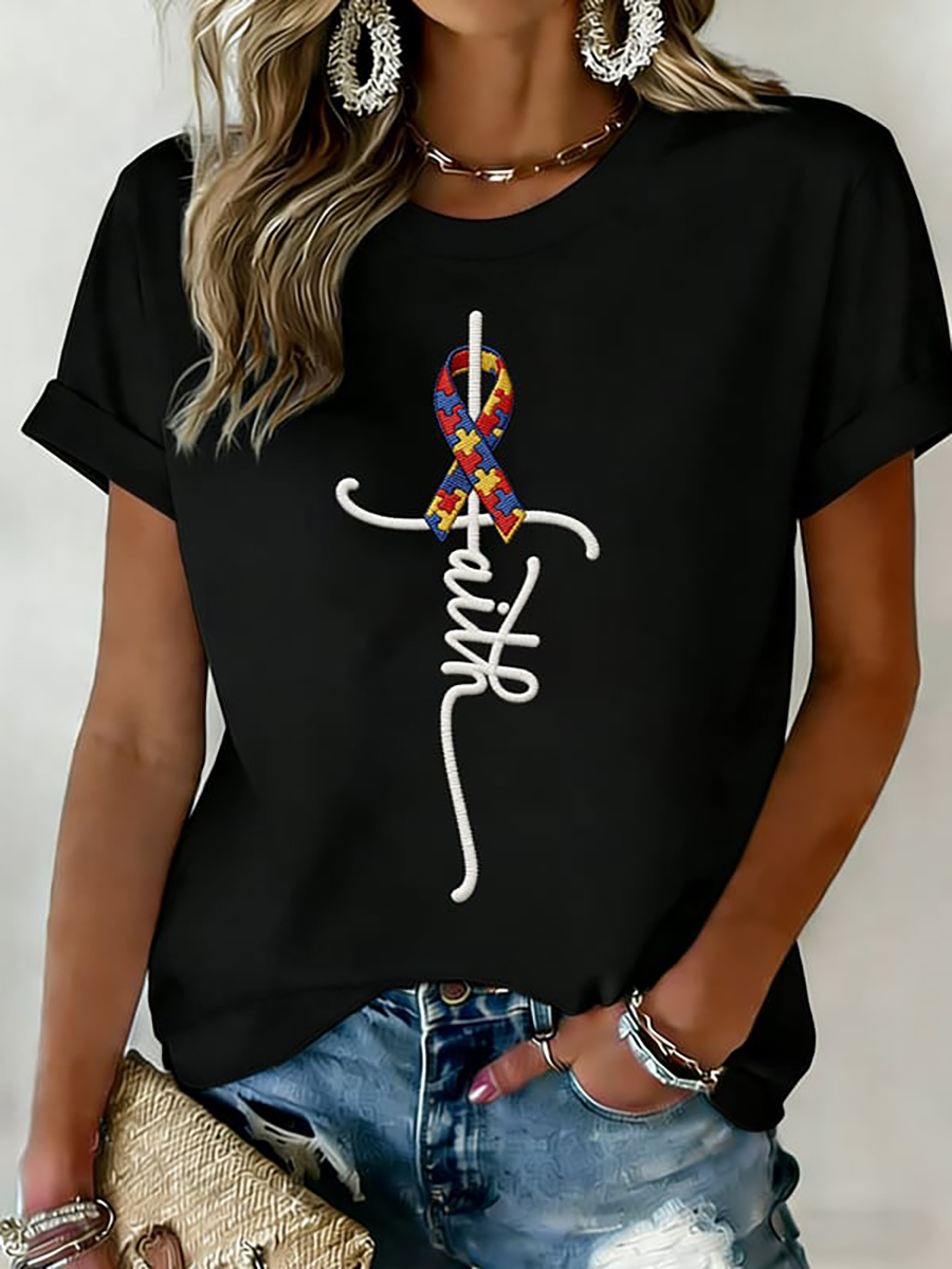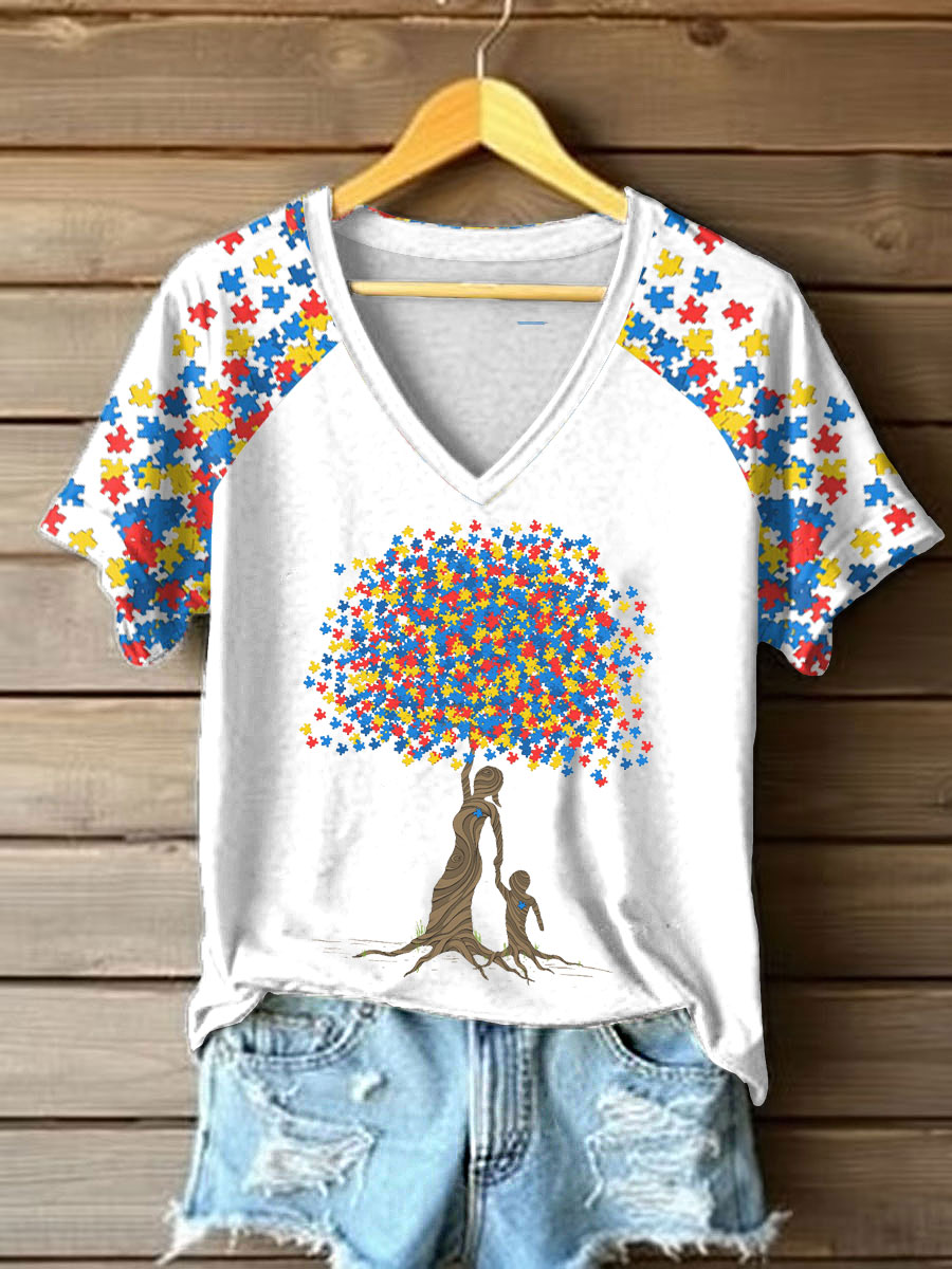 Women's Autism Awareness Printed Casual T-Shirt