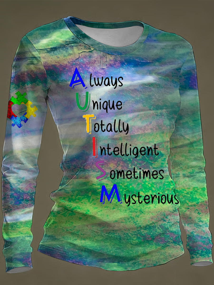 Women's Autism Awareness Round neck long sleeve T-shirt