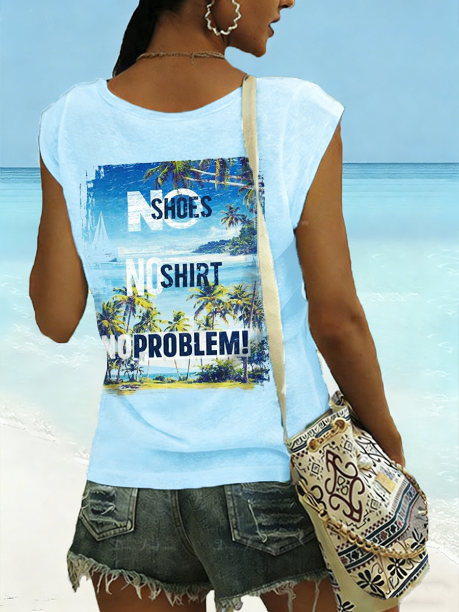 Women's No Shoes No Shirt No Problems Print Vest Top