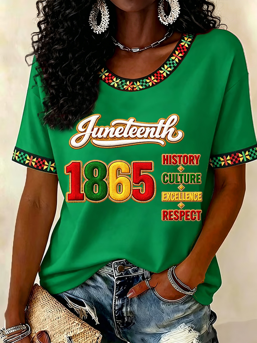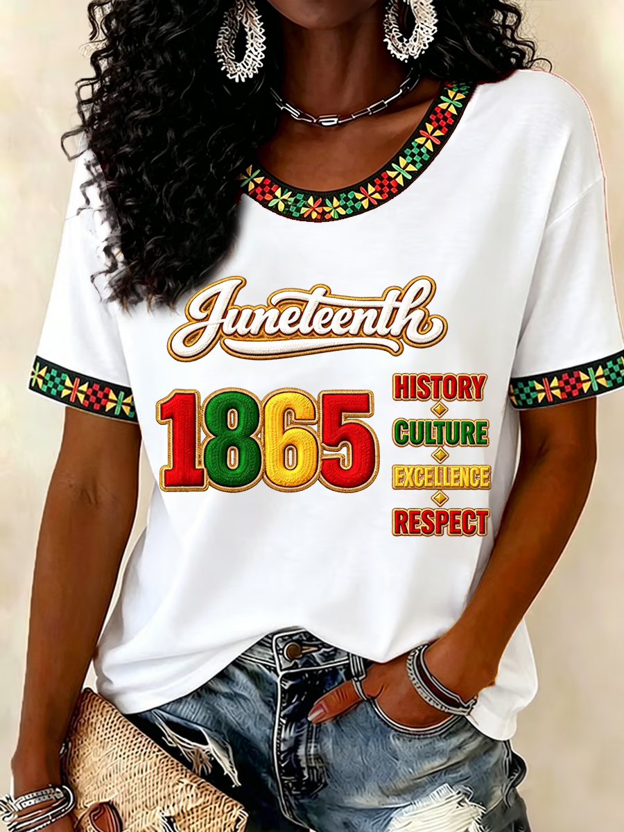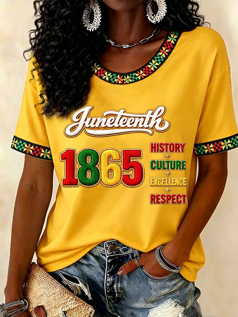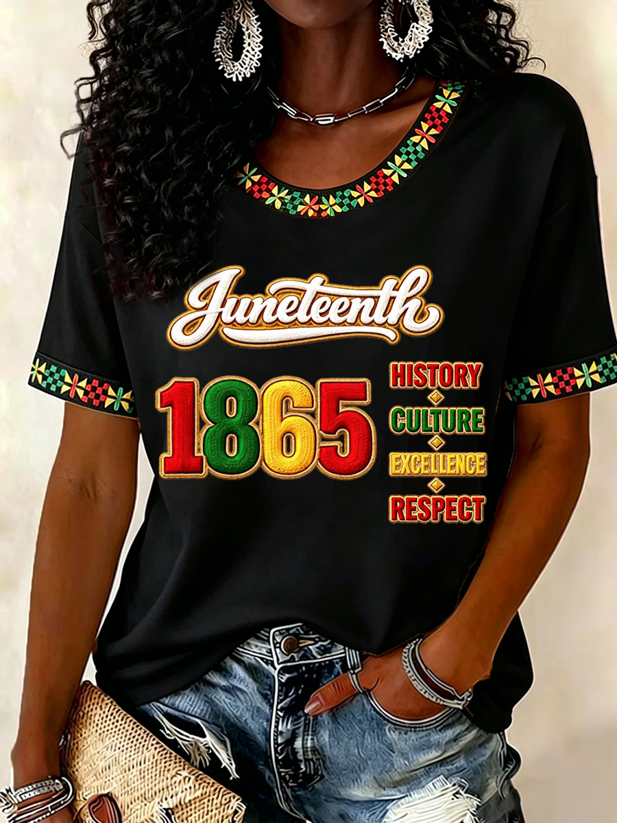 Women's Juneteenth 1865 Print Casual V-Neck Tee