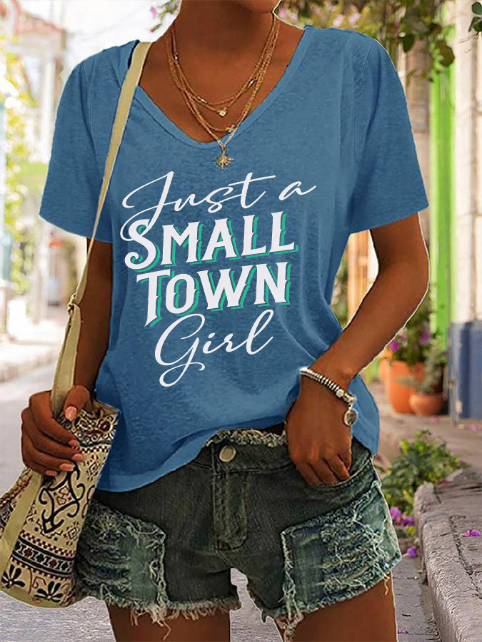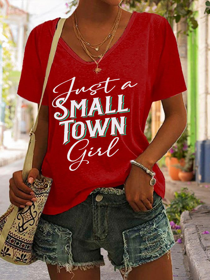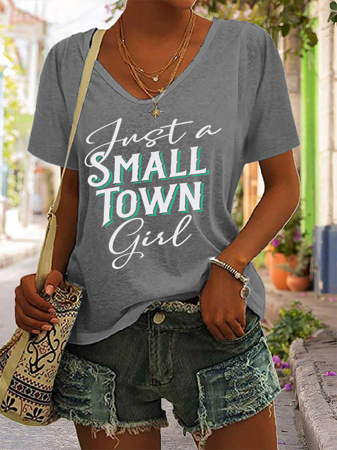 Women's Just A Small Town Girl Printed V-neck T-shirt