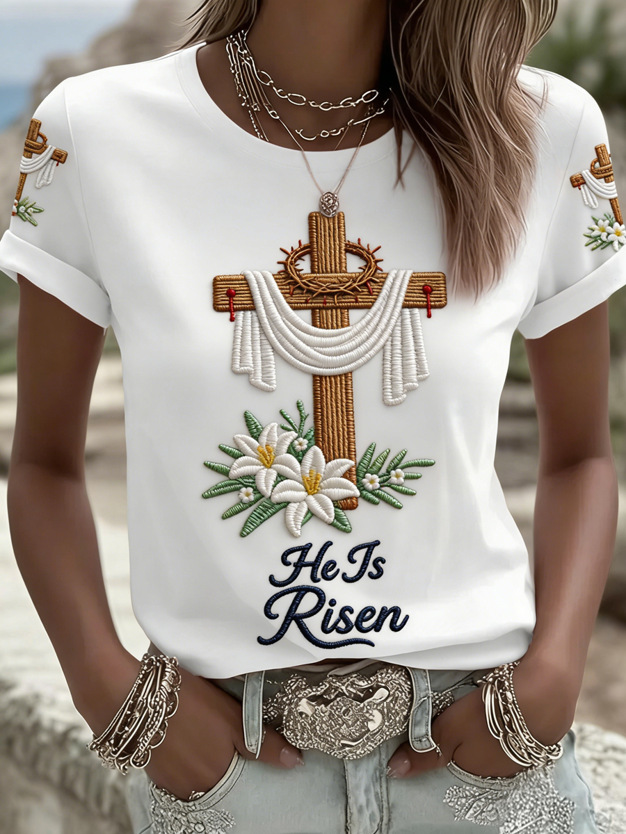 Women's He Is Risen Jesus Christian Cross Print Tee