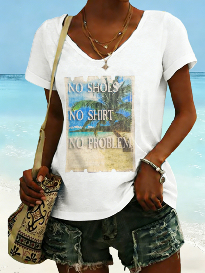 Women's No Shoes No Shirt No Problems Print V-neck T-shirt