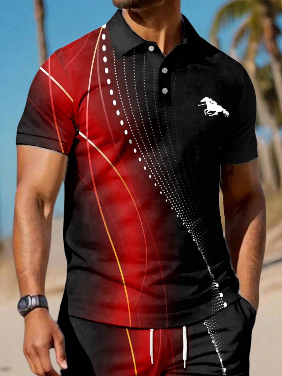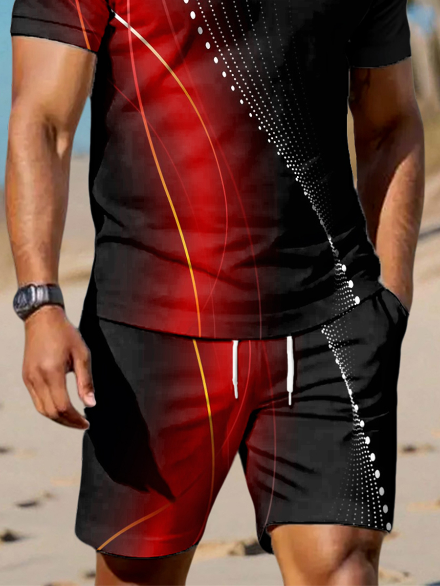 Men's Art Waves Print Casual Two-Piece Set