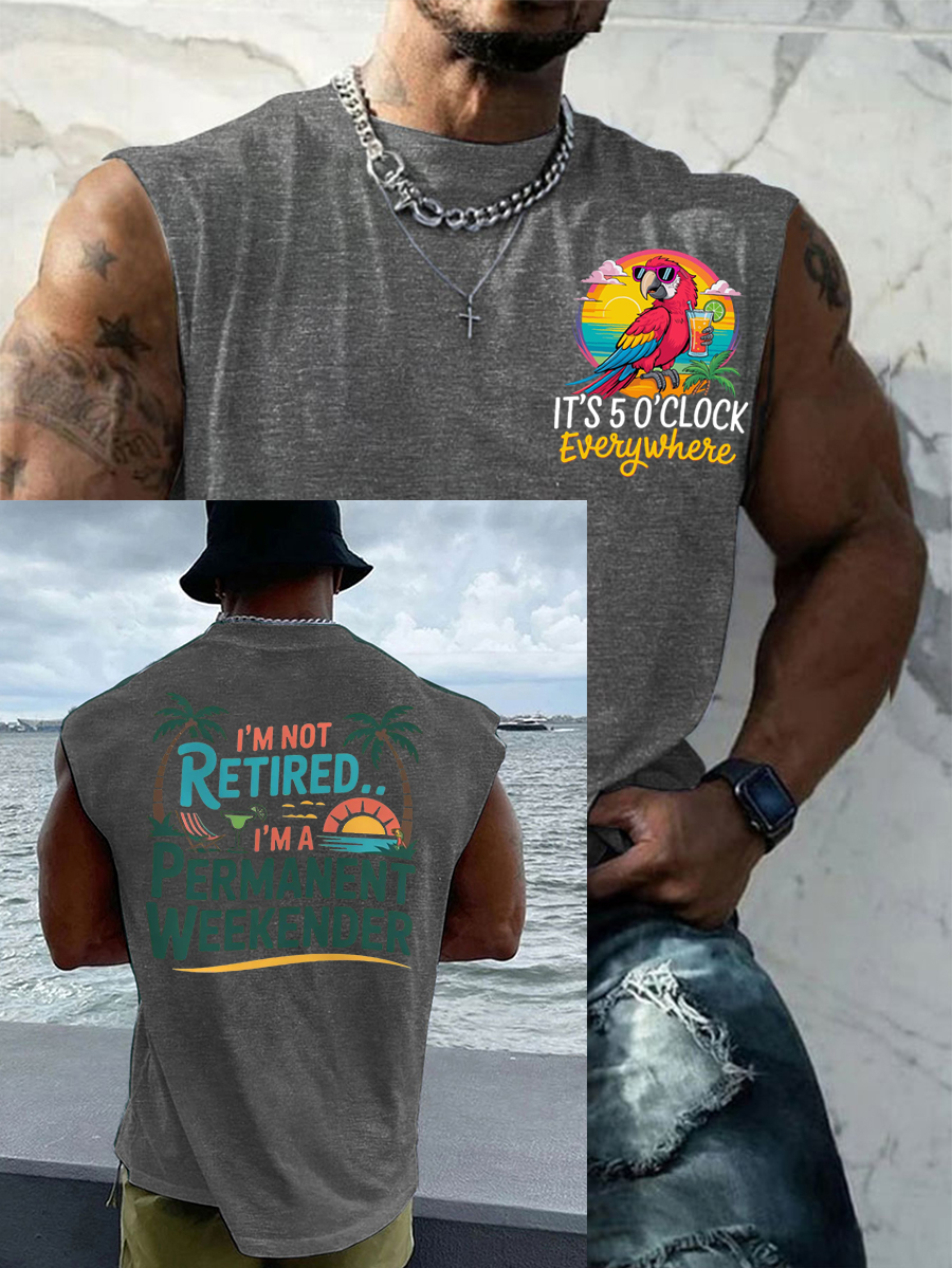 Men's I'm Not Retired I'm A Permanent Weekender It's 5 O'clock Everywhere Parrot Casual Tank Top