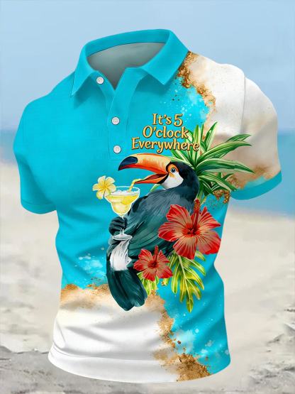 Men's I'm Retired It's 5 O'clock Everywhere Parrot Print Casual Short Sleeve Top