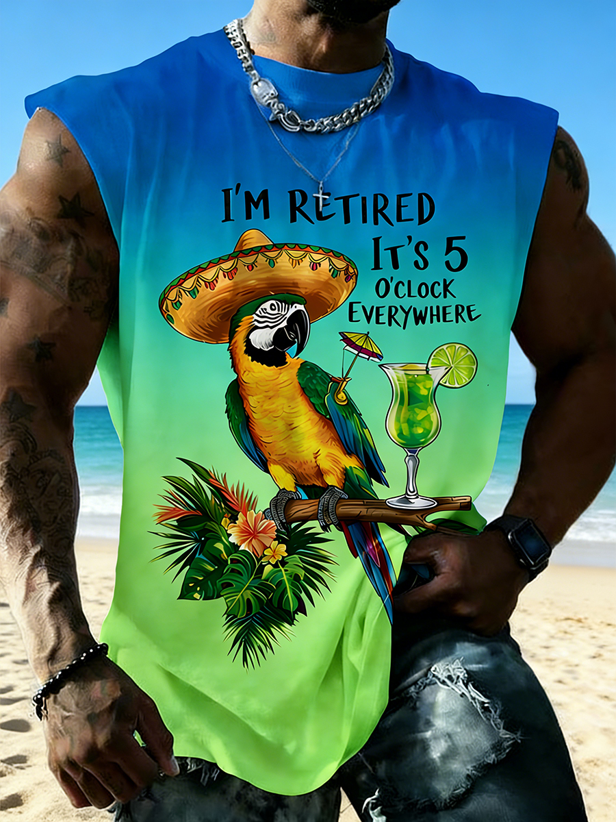 Men's I'm Retired It's 5 O'clock Everywhere Parrot Print Casual Vests