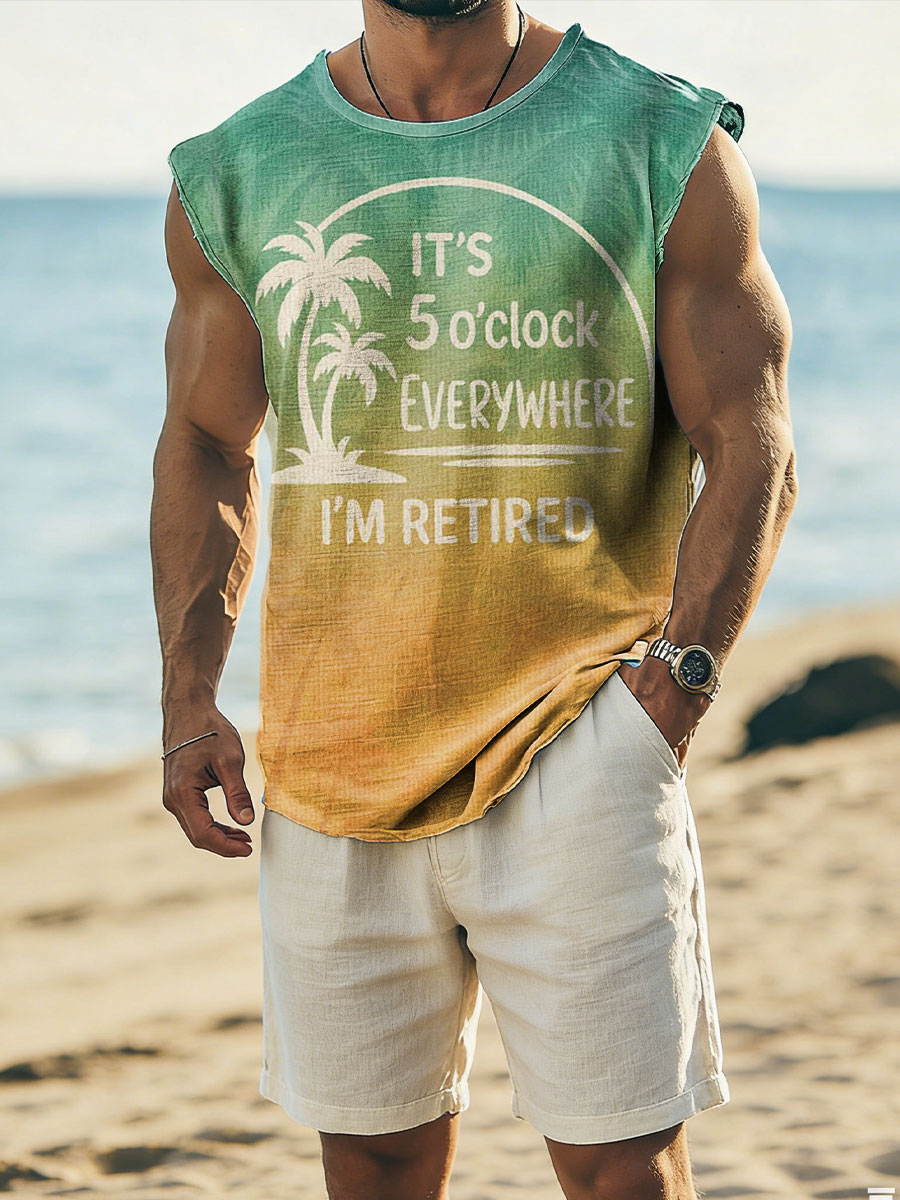 Men's Vacation Style Funny Retirement Printed Tank Tops