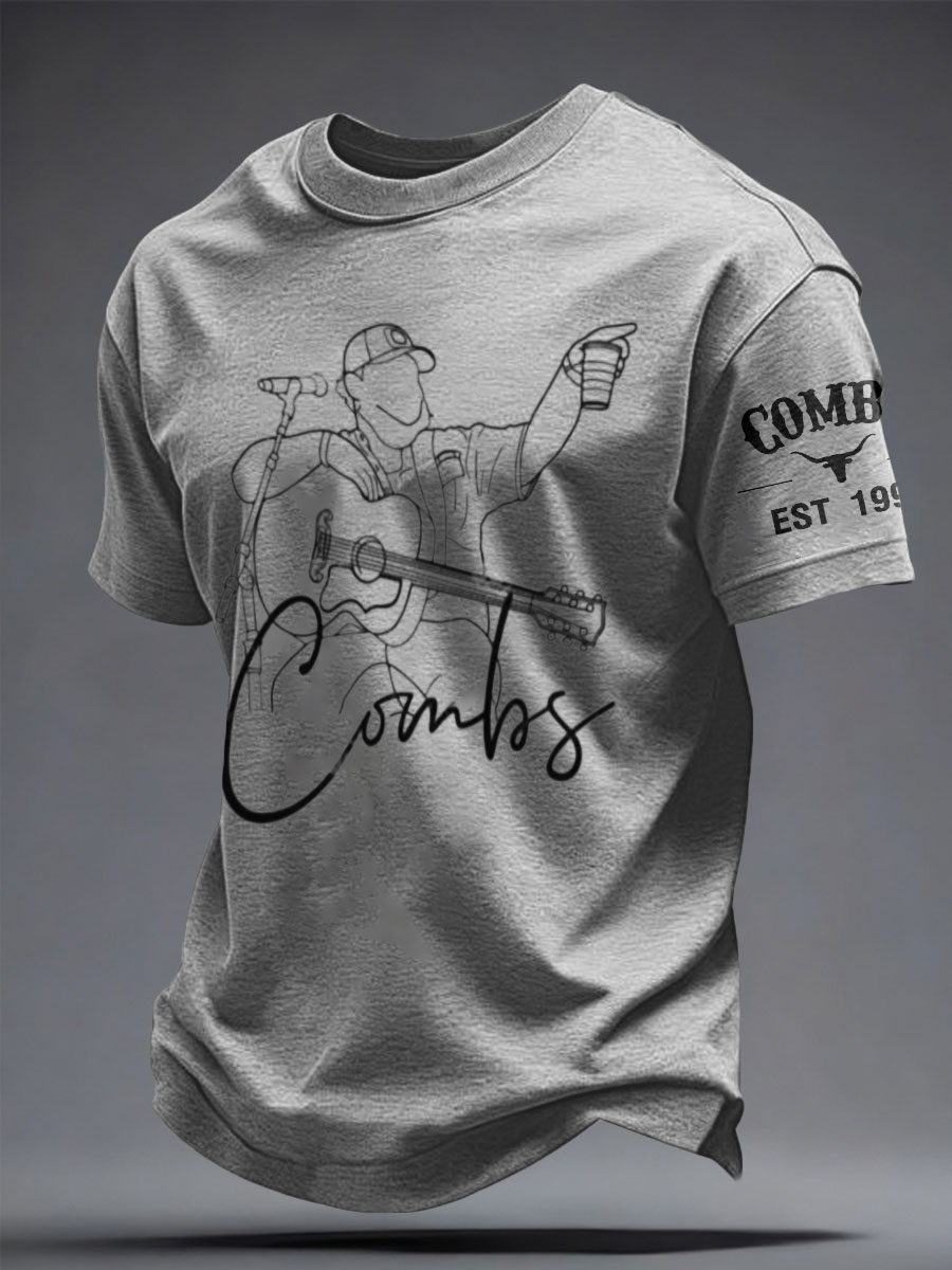 Men's Western Style Country Music Lover Combs Printed T-shirt
