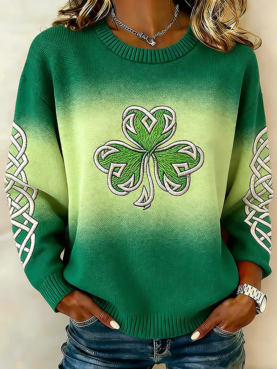 Women'S Casual St. Patrick's Day Shamrock Printed Sweater