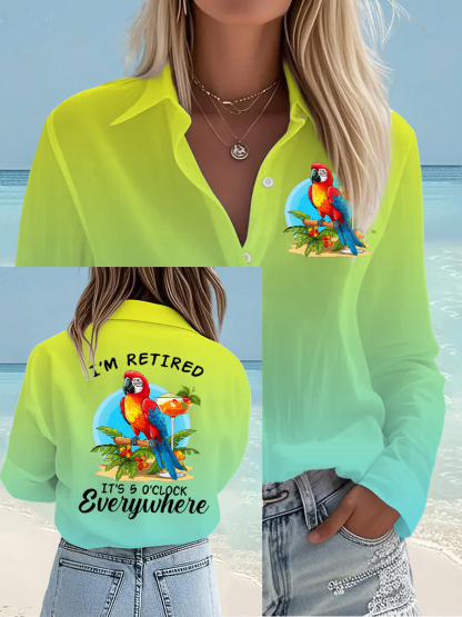 Women's I'm Retired It's 5 O'clock Everywhere Parrot Print Casual Shirt