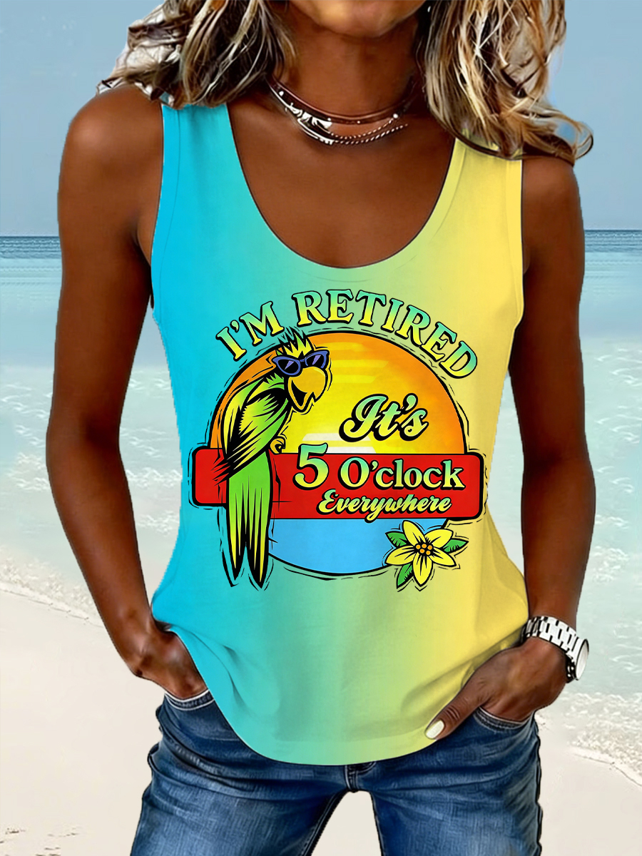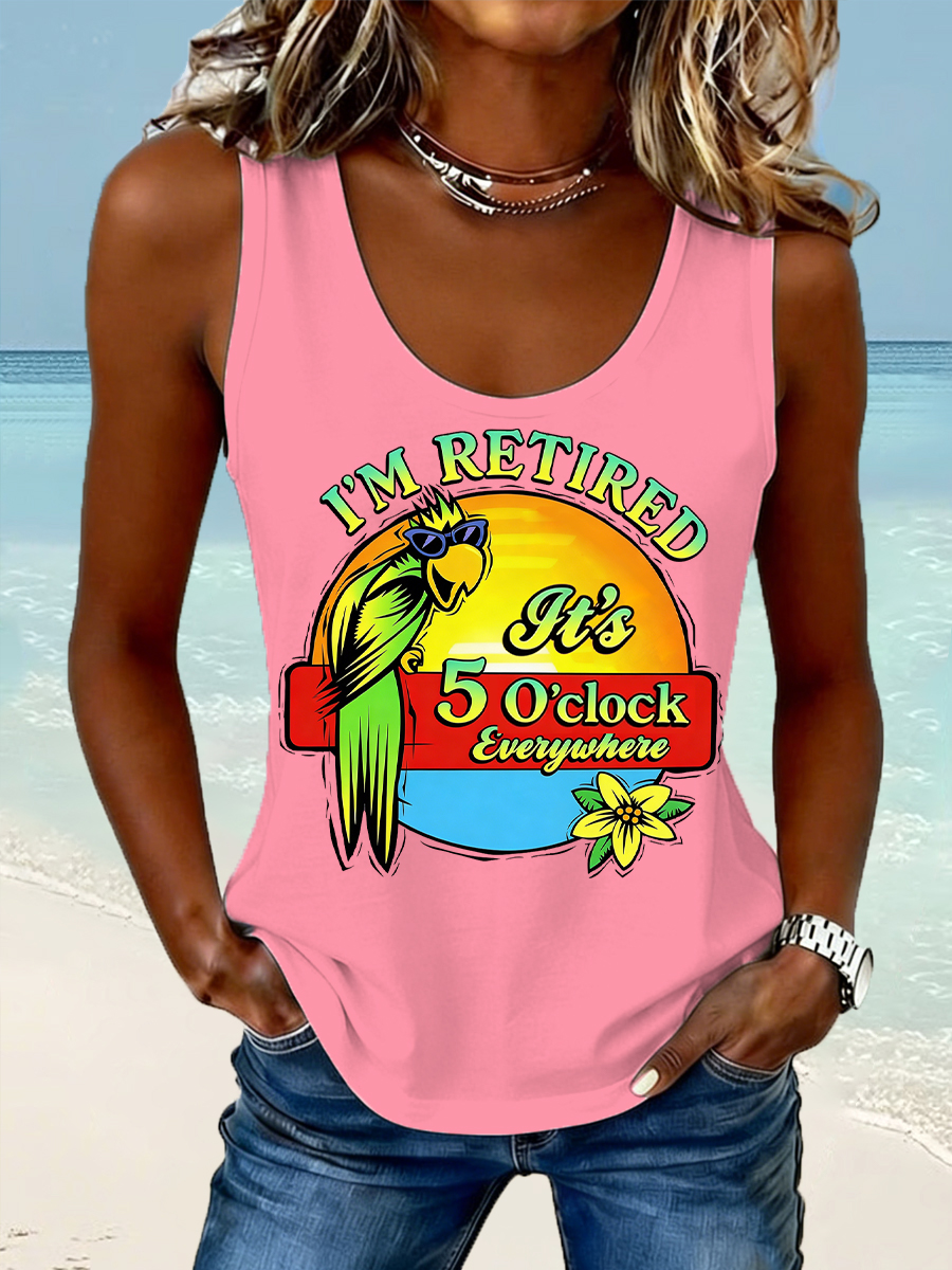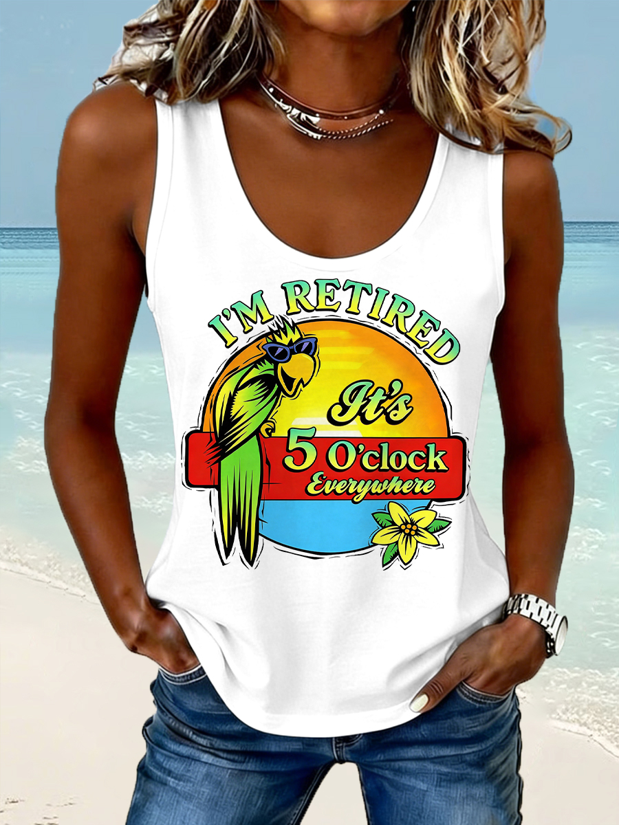 Women's I'm Retired, It's 5 O'clock Everywhere Parrot Print Casual Vest