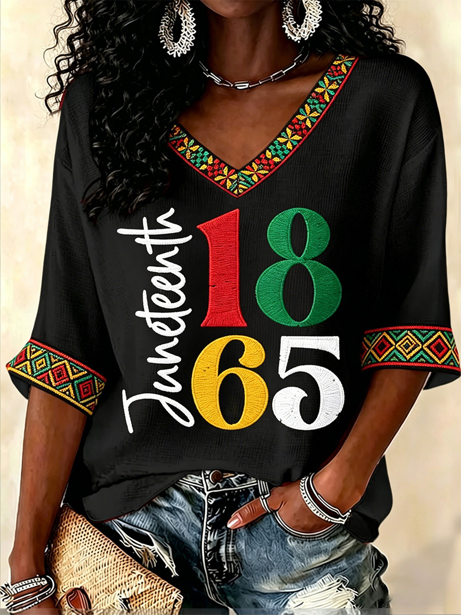 Women's Juneteenth Print Waffle V-Neck Top