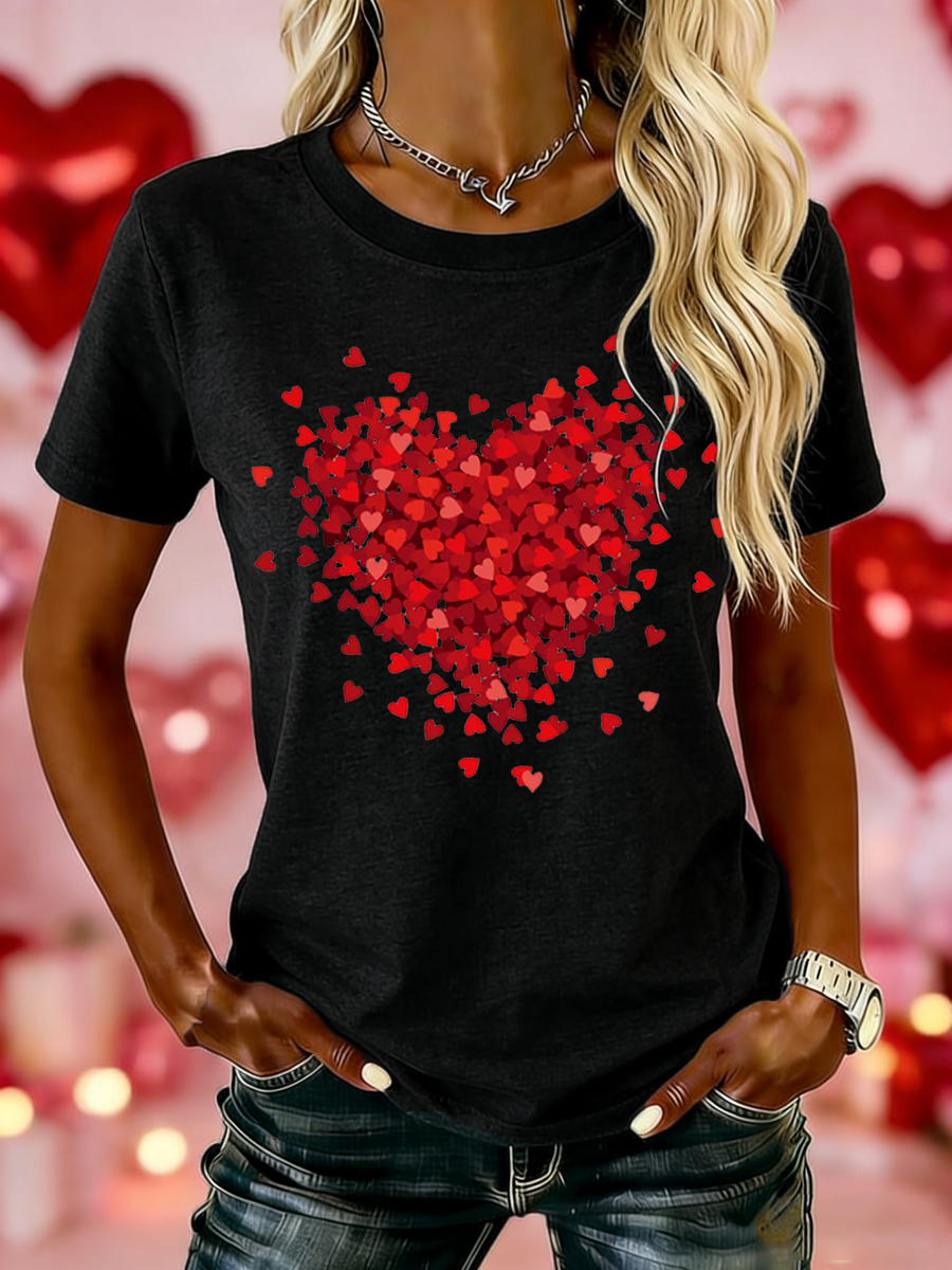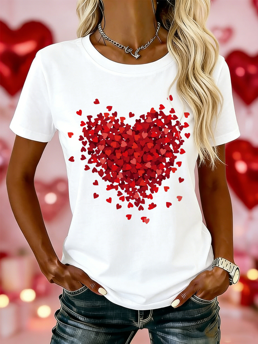 Women's Valentine's Day Love Heart Print Casual Tee