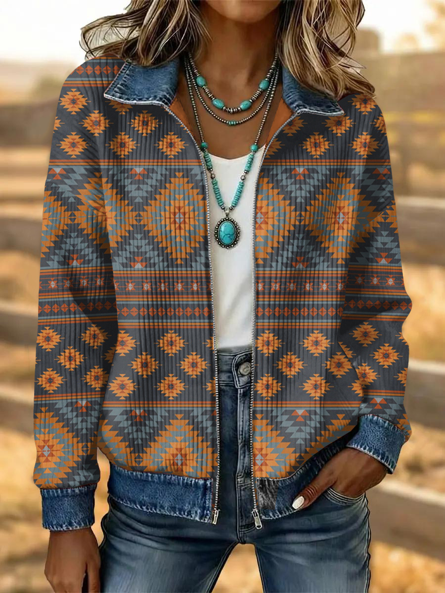 Women's Vintage Western Flower Art Patchwork Denim Jacket