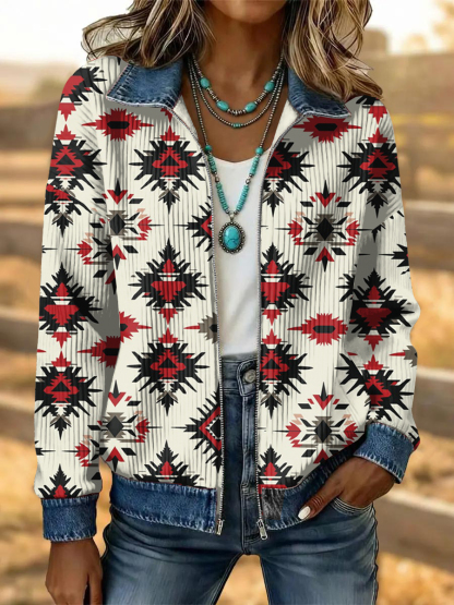Women's Vintage Western Flower Art Patchwork Denim Jacket