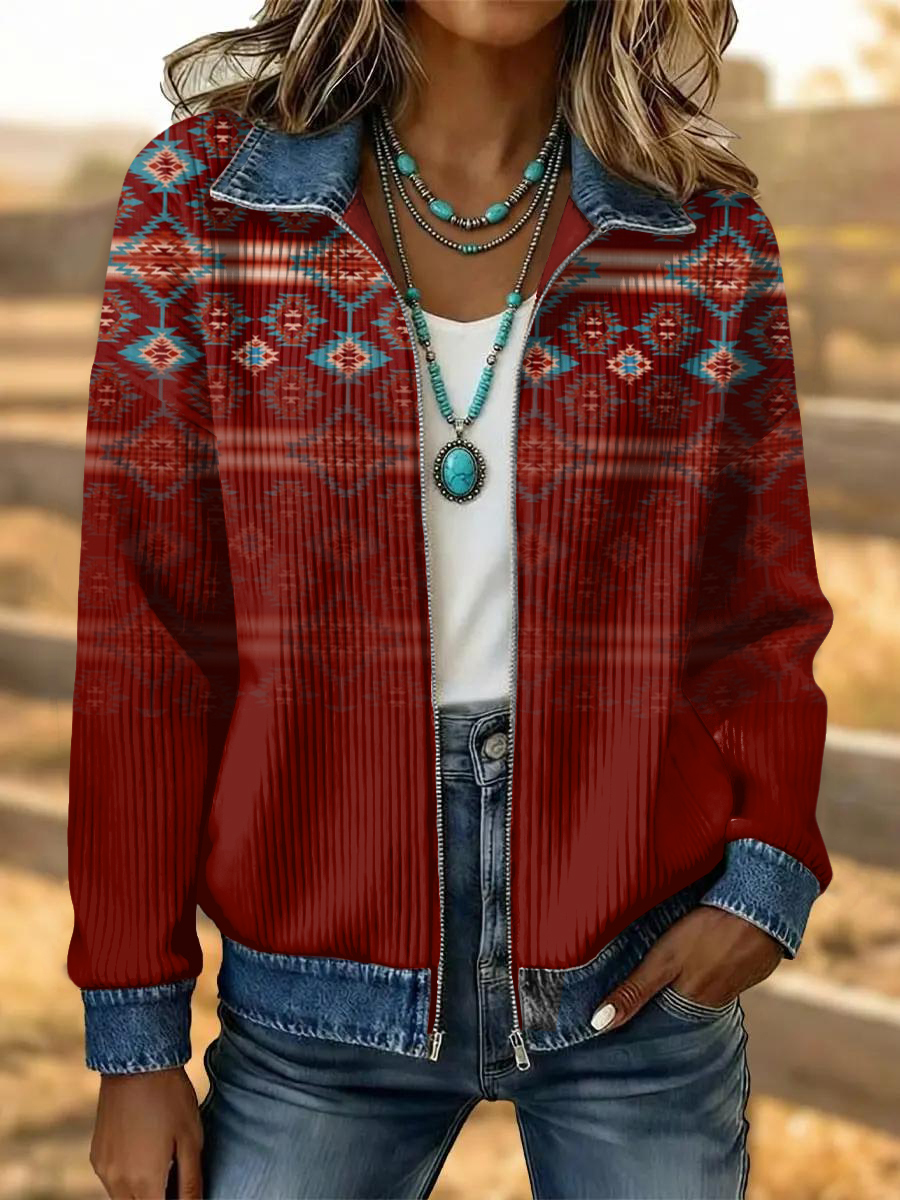 Women's Vintage Western Flower Art Patchwork Denim Jacket