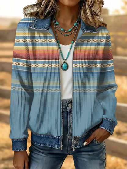 Women's Vintage Western Flower Art Patchwork Denim Jacket