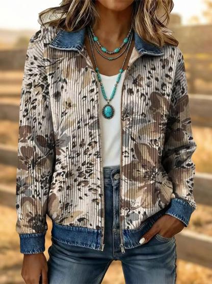 Women's Vintage Western Flower Art Patchwork Denim Jacket