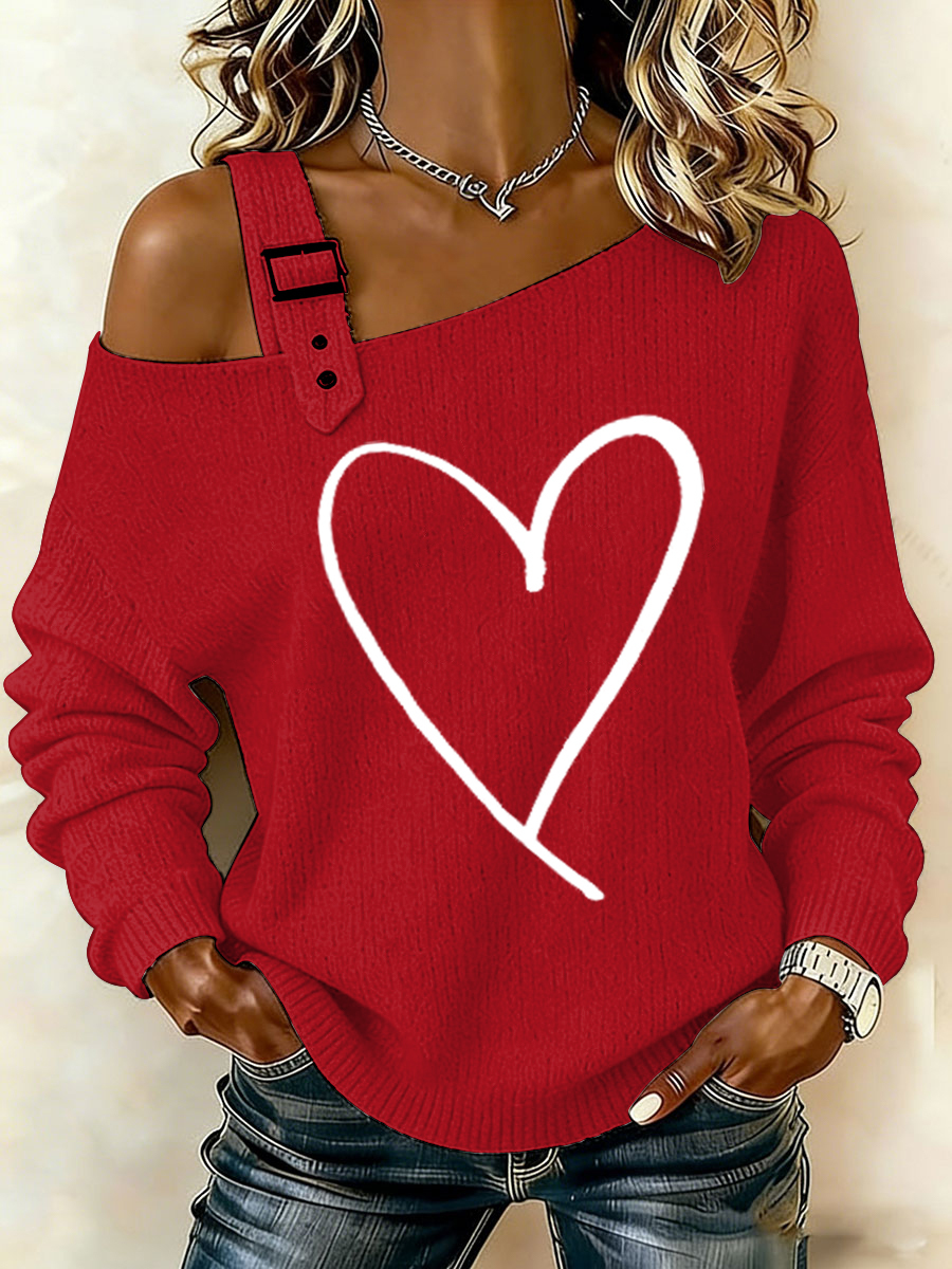 Women's Valentine's Day Love Heart Print Casual Off-Shoulder Top