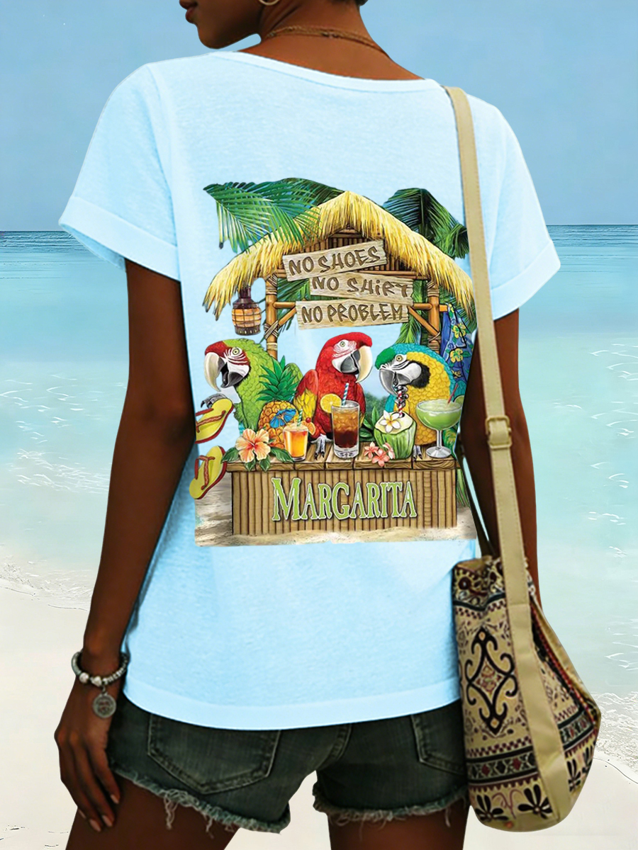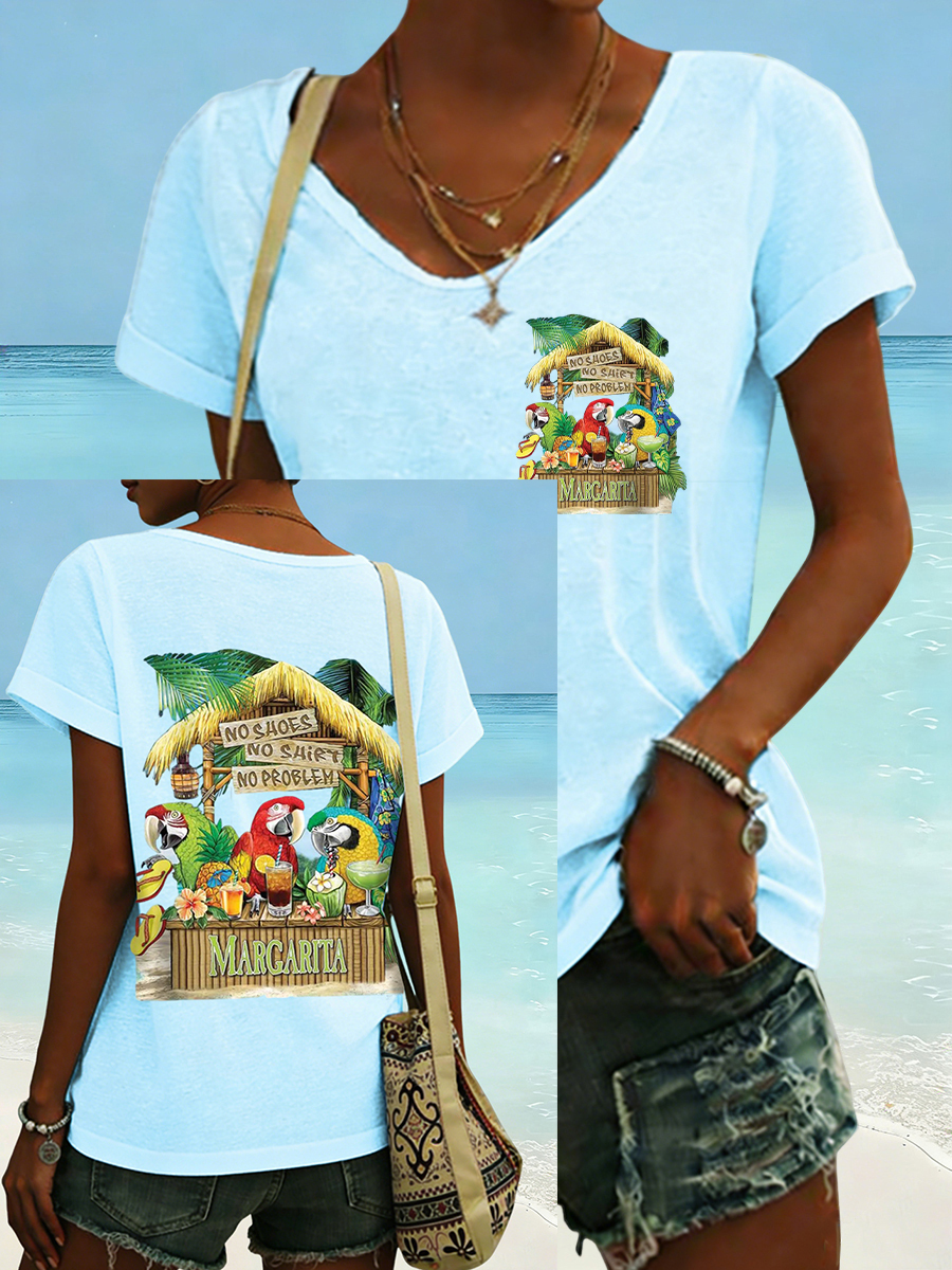 Women's No Shoes No Shirt No Problems Print V-neck T-shirt